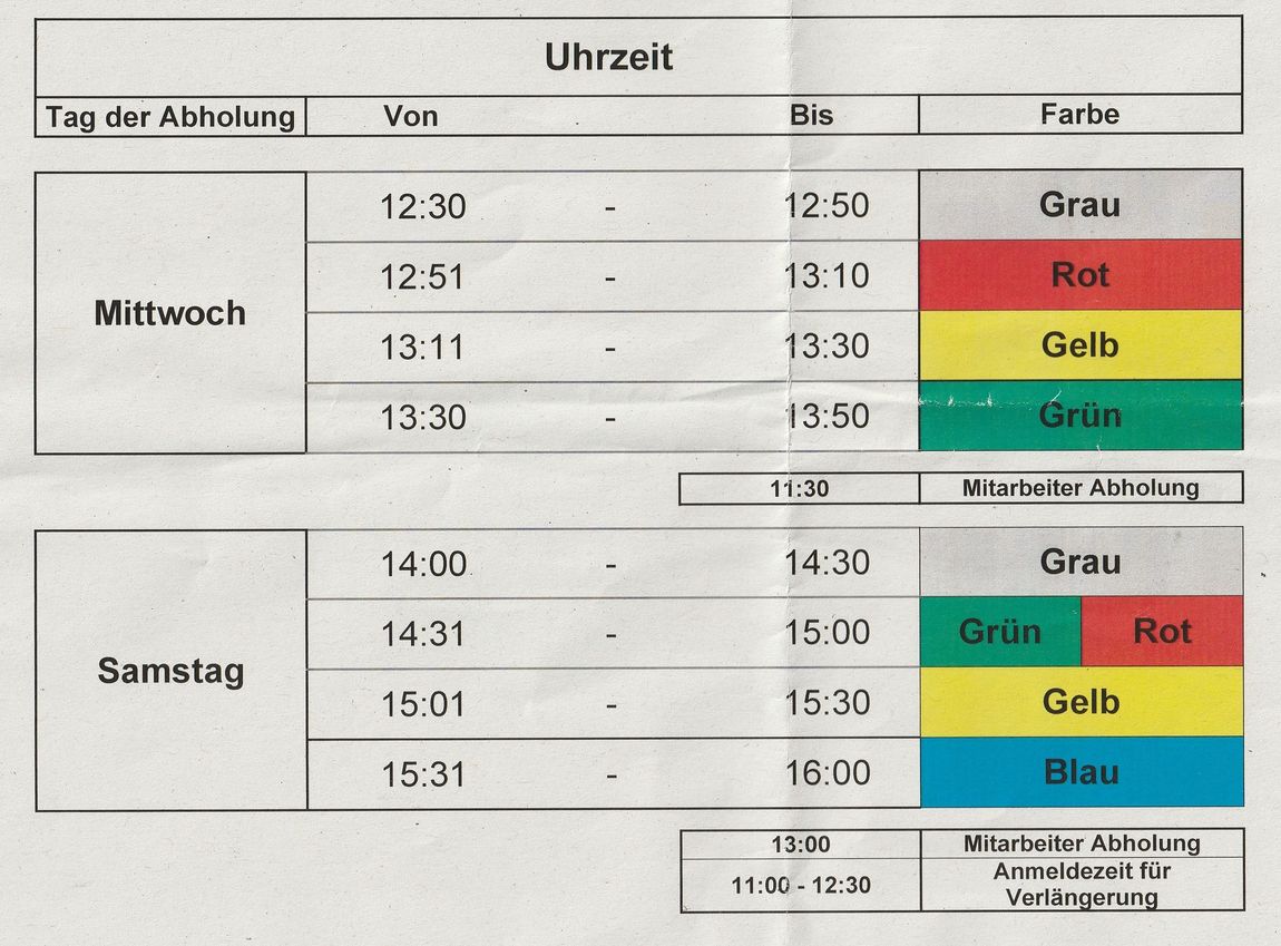 ABHOLZEITEN: